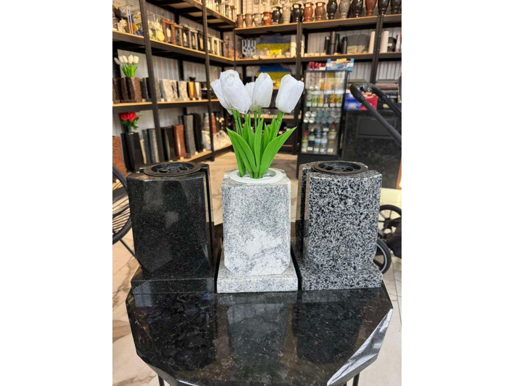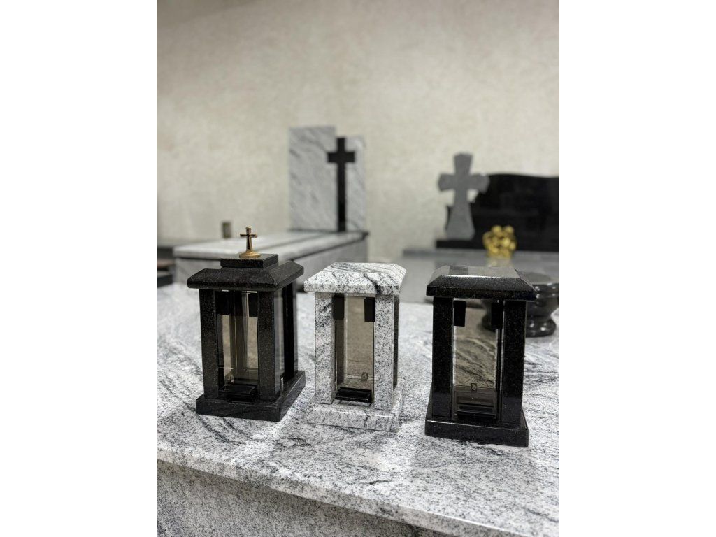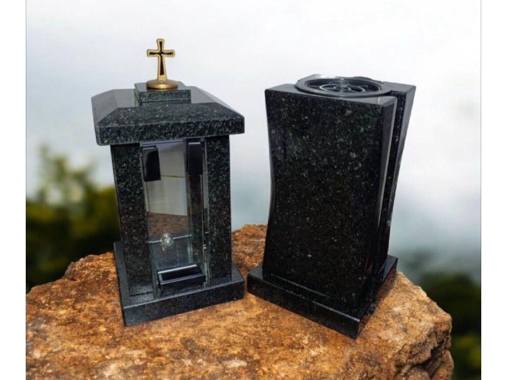 Tento žulový set lampy a vázy na hrob představuje elegantní a praktický doplněk ke každému pomníku. Kombinace přírodního kamene, skla a kovového detailu vytváří harmonický celek, který působí důstojně a nadčasově.